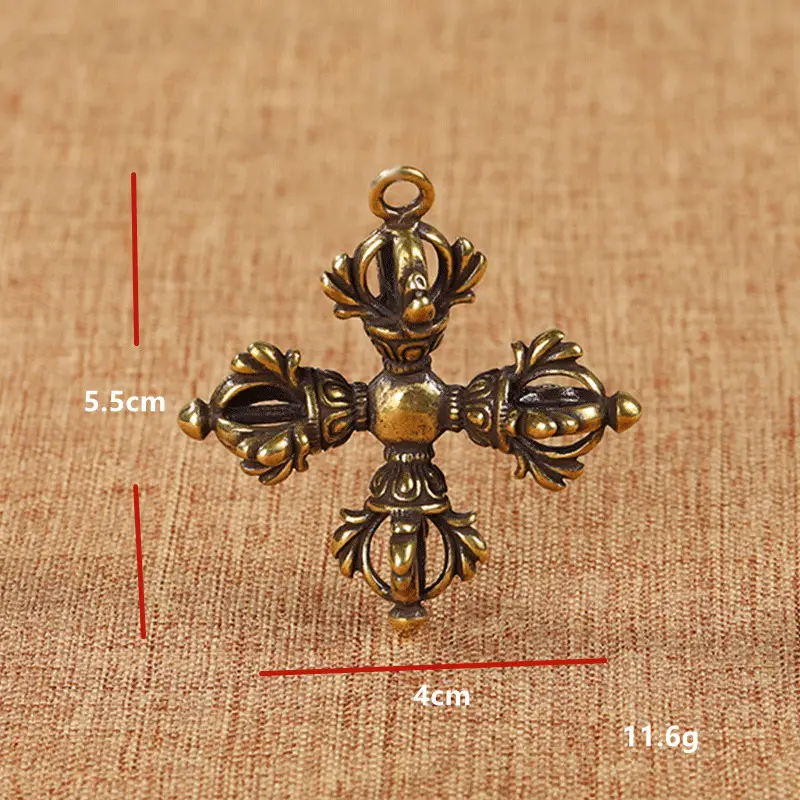 Dieser edle handgemachte, goldfarbene Anhänger aus Messing stellt einen Doppel- Dorje / Vajra / Donnerkeil dar und ist ein traditioneller Ritualgegenstand aus dem tibetischen Buddhismus, er repräsentiert Mitgefühl, die reinste Form männlicher Energie.
