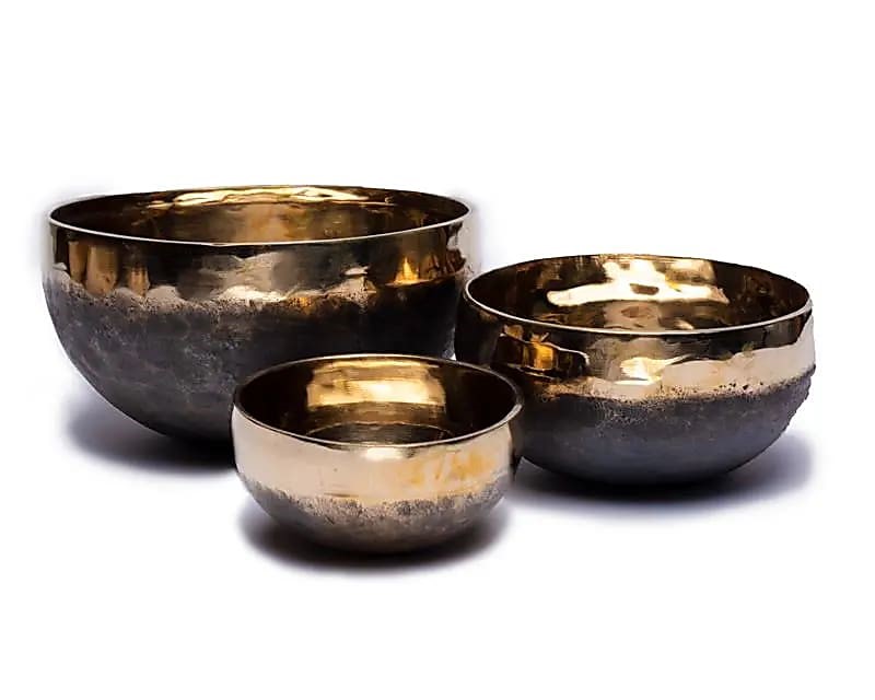 Nach Fertigstellung der Ausformung wird jede Klangschale individuell durch einen Erhitzungsprozess und anschließendem Schlagen in ihre eigene, einzigartige Form gebracht. Anschließend wird die Klangschale für die Feinabstimmung erneut beschlagen. Zum Abschluss werden die Klangschalen innen und außen geglättet, gereinigt und verziert.