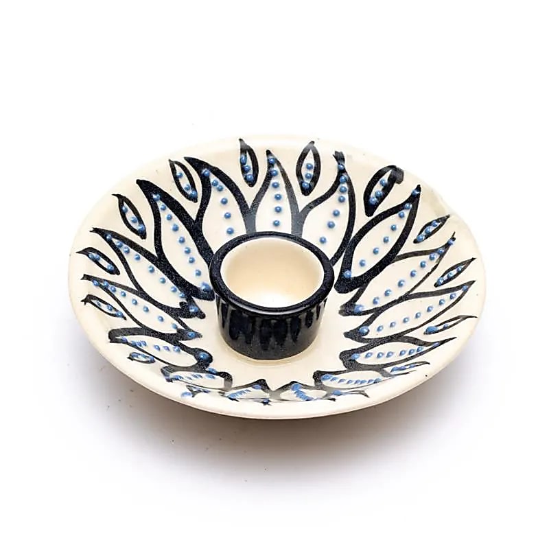Ein eleganter, runder und handbemalter Keramik-Halter der speziell zum sicheren Verbrennen von Palo Santo Holzstäbchen entwickelt wurde;